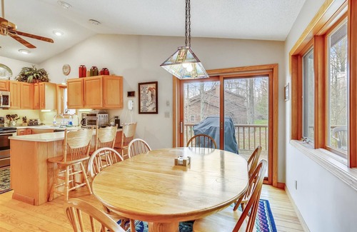 In winter, Timberdoodle is a great home base for winter sports! In summer, spring and fall, enjoy hiking from the townhouse in the two adjoining refuges with vast trail systems: Canaan Valley National Wildlife Refuge and Dolly Sods Wilderness Area. A fishing pond, horseback riding and a tennis court are also in the neighborhood. After the day’s fun, soak in the hot tub, warm up by the romantic stone fireplace, catch up with friends on Wi-Fi, or watch a movie on the flat screen cable TV. The open floor plan allows you to enjoy the company of your family and guests while preparing meals in the well equipped kitchen. If relaxing is more what you have in mind, the private wrap around deck, surrounded by trees, is perfect for enjoying peaceful mornings, listening to the birds, or outdoor entertaining under the stars.