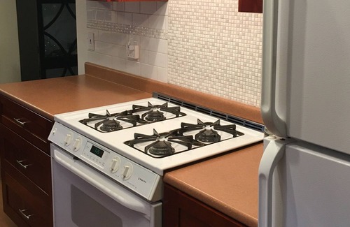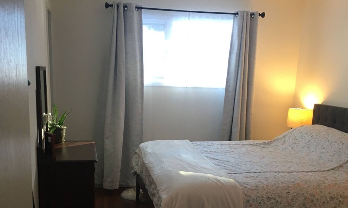 City of Kelowna business licence 4089570, sleeps up to 6. Nestled away in a quiet yet central location this cosy little 3 bedroom rancher has it all to keep you comfortable. Very clean! HOT water. Keyless entry. King bed in master bedroom with half bath en suite. 2 more bedrooms complete with a twin bed in each, can add additional floor mattress to accommodate more children etc. Main bathroom has full tub. Laundry room off kitchen is also set up as a craft room for kids. 55” Samsun smart TV set up with Disney, Netflix and Prime. 5 min walk to number 11 bus route. Close to Costco, greenway, 45 mins to Big White. Private backyard oasis complete with bbq and covered sectional seating area. Well behaved dog allowed with pet deposit. No cats had ever been in house, not allowed. Washer dryer on site, free parking for two vehicles on site, central air. Be advise - no dishwasher, sink only.
