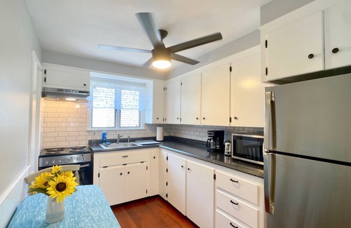 Welcome to Middletown, Rhode Island! Known for its beaches, family-friendly farms, International Polo, and proximity to downtown Newport, Middletown is a lovely place to visit or a slightly quieter location to retreat to when visiting the bustling Newport! The Franklin suite at "Green End Inn" comfortably sleeps 4 adults (parties up to 6 with kids) welcomes families and pets offering 2-beds, 1-bathroom, equipped kitchen, bright living room, and even some outdoor space to enjoy. Plenty of parking for all and just a quick drive or Uber to the beaches or downtown Newport.