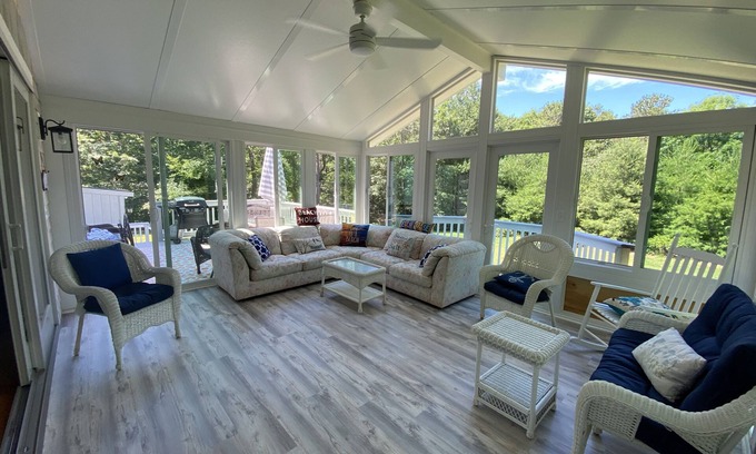 Beautiful Florida Sunroom on Cape Cod. Enjoy the quiet neighborhood and the privacy of our home but yet be only 15 minutes from local attractions. Spacious yard that abuts nature trail and conservation land for privacy! Close to Martha’s Vineyard Ferry and shopping and restaurants