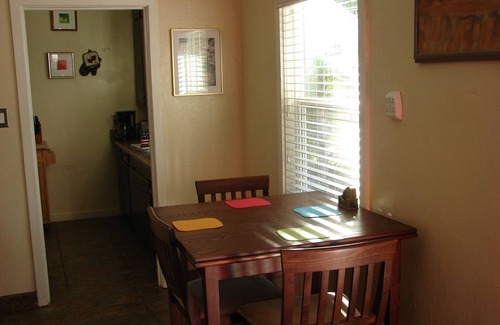 The Ajo Hideaway is located at the top of Ocatillo Street (don't be thrown off the misspelling of Ocotillo on the sign), just down from the corner of Sahuaro St., and is a wonderful perch to enjoy the town from and get away from the hustle bustle of urban life. You may find yourself surrounded by hummingbirds, doves, desert thrashers and cactus wrens while on the front porch. The home is surrounded by native mesquite trees and native cacti on adjacent properties. The center piece photograph in the living room is titled "Ocotillo's last stand," a fitting tribute to the cactus, the home and the area. Circle K and the Family Dollar store are just blocks away for convenience and just up the road a mile is the IGA grocery. Ajo is truly a magical place. Come to the Ajo Hideaway and enjoy, you may not want to leave!