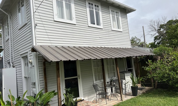 High end in-law suite, 850 square feet. Furnished with antiques, original oil paintings, king size bed, real stone quartzsite counter, designer down filled couch, flat screen, etc. In upscale neighborhood 150 yards from Tulane. Seven blocks from street car and grocery store. Very secure with cameras and behind 7 foot fence with locked gate. This home is in the back yard of a larger house so its quiet. No shared walls. Has two front doors but this is not a double. Nice, large yard. Quiet block on 1228 Pine St, New Orleans. Mix of single family and college homes on block with lots of bars and restaurants within walking distance. Large front home has a small family. This is a nice clean place. No pets and no smoking inside but smoke whatever you want outside. Street parking. Washer & dryer. All wood floors.