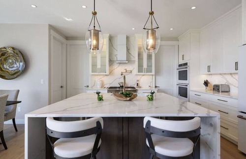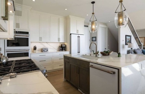 This delightful luxury home will sleep up to 8 people, with 2 people in each bedroom. You will enjoy a stunning gourmet kitchen, 4 full bathrooms, laundry room, living room with a fireplace, and a 2nd living room (ideal for kids and games!). Enjoy the fresh air on the deck with comfortable seating, a private 4 person hot tub, and BBQ grill.