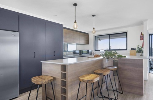 The kitchen is well equipped with a breakfast bar, bar stools, brand new appliances such as an induction cooktop and ample bench space for preparing meals, the kitchen has been stocked with quality crockery, glassware, utensils, cookware, pantry items and everything you need to entertain and to make your stay comfortable all with stunning lake views from the kitchen and dining area.