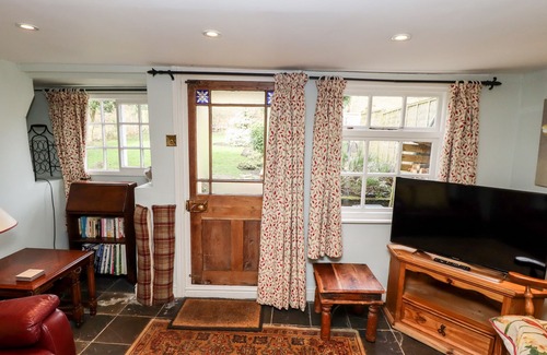 Amenities: Gas central heating with underfloor in bathroom, gas stove and woodburning stove. Electric oven, gas hob, microwave, fridge/freezer, washing machine, tumble dryer, dishwasher, TVs with Freeview, DVD, WiFi, selection of books, games and DVDs. Fuel, power and starter pack for stove inc. in rent. Bed linen and towels inc. in rent. Cot and highchair on request. Roadside parking. Bike storage. Enclosed lawned garden with furniture, BBQ, outside tap, boot box and dog kennel. Two well-behaved dogs welcome. Sorry, no smoking. Shop and pub 3 mins walk. Tea room next door. Note: Two steps down into twin bedroom. Note: The stairs are steep and narrow. Note: Supermarket deliveries can be received and unpacked by prior arrangement. Please note: bookings can only start on a Monday or Friday.