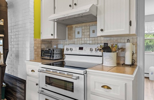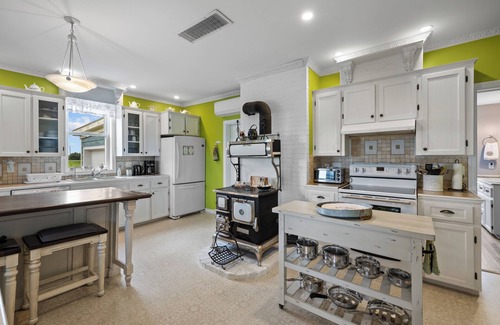Step inside and be welcomed by the warm, inviting atmosphere of this lovingly maintained home. The large, fully equipped kitchen provides everything you need to prepare home-cooked meals, with ample counter space and modern appliances complementing its farmhouse charm. The main bathroom features a double sink vanity and full tub/shower combo, making it convenient for families or groups.
