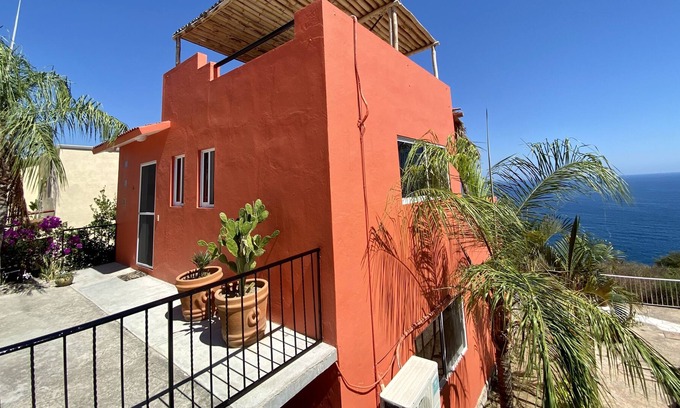 This cliff side Villa is located in a private and secure community. The community has a shared infinity pool with a palapa for shade. Enjoy endless Pacific Ocean views from any of the houses 3 verandas. The Villa is fully equipped with everything you need for a relaxing stay. A car is highly recommended, however there are 2 amazing beaches within a 15 minutes walk.
