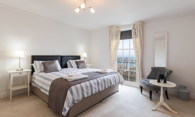 Bedroom 3, the master bedroom, has a private balcony, for taking coffee or a glass of wine, and enjoying the awe-inspiring views of Cowes Harbour, and the Solent.