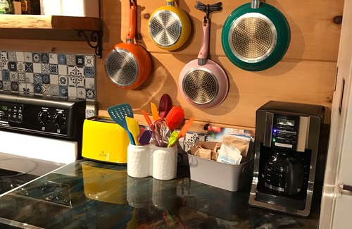 *Kitchen (stove, refrigerator, microwave, coffee pot, toaster, pots & pans, dishes, dish soap)