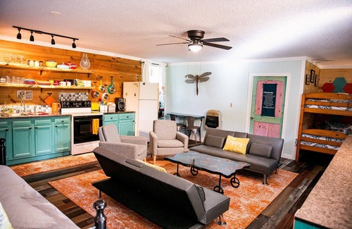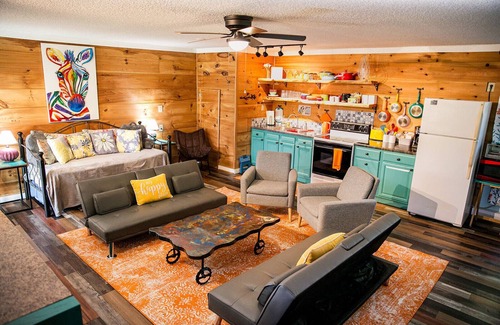 APT #1 Funky and Fun Studio with 1 King size bed with super comfy mattress and Daybed with a Trundle bed. (Sleeps 4) Fully Stocked Kitchen with anything you could want ! Stocked bathroom with fresh towels and Handmade Goats Milk Soap !