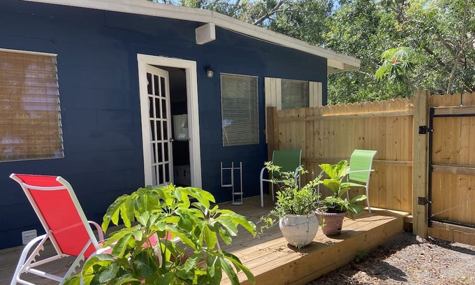 Great location for your stay in Sarasota. On a quiet street with a generous private fenced in back yard, off street parking and everything you need to make your vacation perfect. Open living area, cozy bedrooms and you feel as though you stepped back in time of the early Florida days in this well planned and updated house built in the 60's. Guests leave great reviews and now this cabin can be your headquarters for a wonderful vacation.