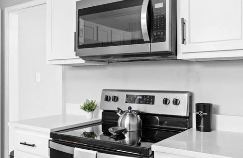 After a day of city exploring, sink into our comfortable sofas in the living area, surf the high-speed Wi-Fi, catch up on your favorite shows, or engage your loved ones in exciting games. The adjacent kitchen, flaunting sleek stainless steel appliances and granite countertops, invites culinary lovers to whip up delightful dishes. Savor these meals in the adjoining dining area, seating six guests comfortably.