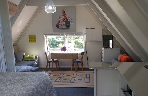 This is a studio apartment fully self contained and entirely separate from the owners house. The studio is suited for a couple and is is 5 minutes walk from the village and railway station and 2 minutes to the river to a walkway that leads to the beach and access to Kapiti Island bird sanctuary. The apartment overlooks an organic garden with produce that is available to guests.