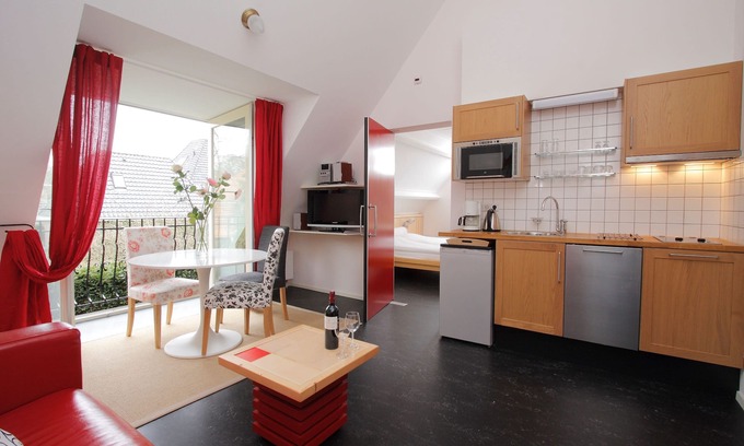 This quietly located two-room apartment is on the first floor of our small-scale apartment complex (6 apartments). Near the center and yet quiet location, here you will be awakened by the birds.