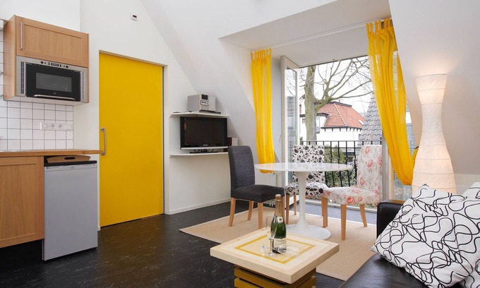 This quietly located two-room apartment is on the first floor of our small-scale apartment complex (6 apartments). Near the center and yet quiet location, here you will be awakened by the birds.