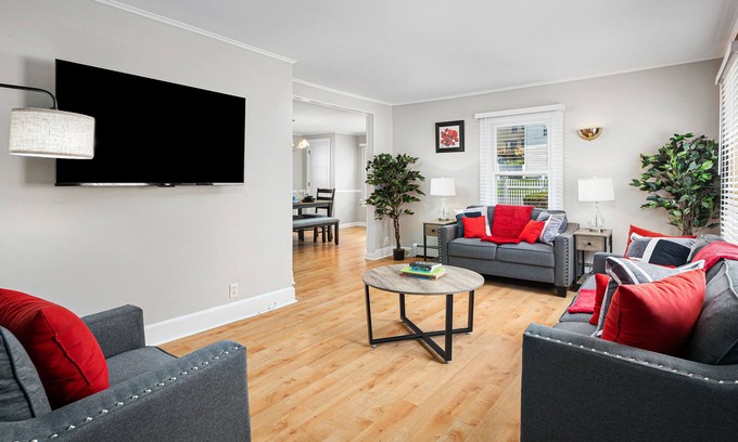 ◼️Living Room: has a 55 inch wall mounted tv with no cable but there is Roku so have all your passwords ready to your streaming services