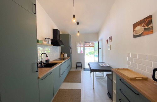 Modern cozy holiday villa near Vidreres Enjoy the warm Spanish sun rays during the day on the beach or enjoy some sporty water sports. When you return, you can take a cooling dip in the private pool and enjoy the setting sun while enjoying a good glass of sangria. Every evening you have the opportunity to prepare an excellent meal on your own stone barbecue. Doesn't this sound like the ideal vacation day? Then book your holiday now and experience this during your stay in Villa Iako. Villa Iako is a fully detached villa with private pool, located in a quiet area and the beach is only 15 minutes away. Villa Iako was completely renovated in 2024 and fully equipped. The villa is a bungalow, so everything is on the ground floor. When you enter the villa you will find a spacious modern living room with air conditioning. The living room has a spacious seating area and dining table and a direct passage to the kitchen, which is fully equipped. The kitchen is equipped with a hob, large oven, dishwasher, boiling water tap, coffee corner and a microwave. The villa also has 4 spacious bedrooms and 2 modern bathrooms. At the rear of this colorful villa you will find a lovely veranda, several seating areas in the garden including a lounge area with great views and a very spacious sun terrace with sun beds around the beautiful blue private swimming pool. The children will have a great time in the spacious swimming pool with stairs while you enjoy the Spanish sun rays. Because of the quiet location and the afforestation you have a lot of privacy and you also have a fascinating view of the surroundings. At the end of the afternoon you can light the permanent stone barbecue so that you can prepare delicious dishes in the evening. Be quick and book villa Iako before this Spanish dream passes you by!!!