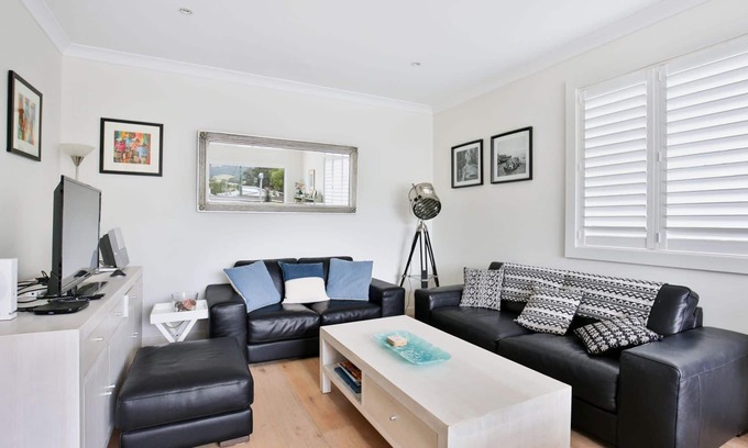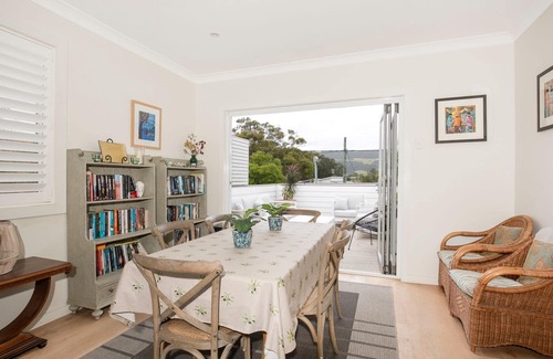 You’ll be staying at a Pet Friendly property where every comfort and convenience has been provided. Brushed with a beautiful, classic beach house style with light filled interiors maybe you’ll sip a cool drink on the deck whilst listening to the waves crash in the distance or enjoy a wine on the back patio whilst the cockatoos circle and squawk.
