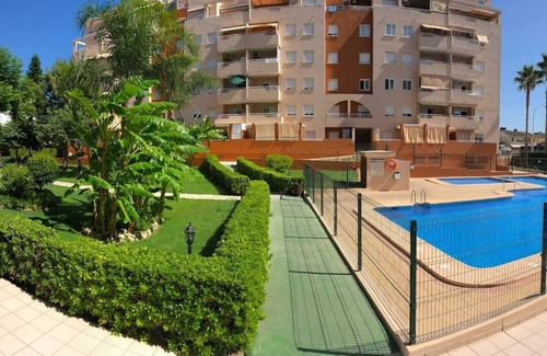 Welcome to your seaside retreat in Gandía! This cosy two-bedroom flat is located just a short walk from the beach. Enjoy a comfortable stay with a modern bathroom, fully equipped kitchen, free Wi-Fi and air conditioning. Relax by the shared pool or explore the local charms, from restaurants and shops to the lively promenade. Ideal for families, couples or friends, book now for an unforgettable seaside holiday! Our cosy flat in Gandia offers a comfortable and well-designed stay. The master bedroom has a double bed and the second bedroom has two single beds. The bathroom is modern and functional. The living room has a comfortable sofa and TV, and is connected to the fully equipped kitchen. The dining room, which seats four people, is ideal for sharing meals. In addition, the flat has a balcony or terrace overlooking the communal swimming pool. Just a few steps from the beach, it is perfect for enjoying the sun and the sea. In our apartment in Gandia, guests can enjoy a comfortable and complete stay with access to all areas of the accommodation, which include: - Two bedrooms: a master bedroom with a double bed and a second bedroom with two single beds. - Modern and functional bathroom, equipped with shower, sink and all essential amenities. - Living room with a comfortable sofa, TV and space to relax. - Fully equipped kitchen with refrigerator, microwave, coffee maker and cooking utensils for preparing home-cooked meals. - Dining room with a table and chairs to enjoy meals with family or friends. - Balcony or terrace overlooking the communal pool, perfect for relaxing outdoors. - Communal pool surrounded by sun loungers to enjoy the sun and cool off. Guests have full and exclusive access to all these areas during their stay in our apartment, we hope you enjoy an unforgettable experience in Gandía! We are SataliRent a tourist accommodation management agency! If you need any recommendations on places to visit, local restaurants or any other information, don't hesitate to ask us. For your convenience, we are available to address any questions or concerns you may have. You can contact us through Airbnb messaging or, if you prefer, I will provide a contact phone number for calls.