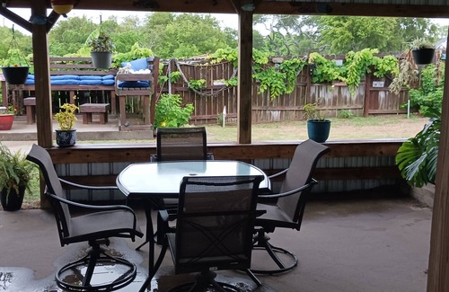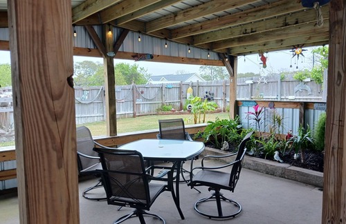A cozy cottage with a tropical oasis in the backyard. Close to fishing (right across the street). This spot is close to all the coastal spots to visit. Swim at the beach, check out shopping in Rockport, visit Corpus Christi, then relax in the perfect backyard. View an amazing sunset from the raised patio, while spotting sailboats on the bay.