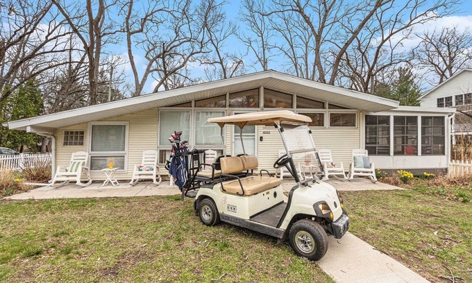 Explore the stunning natural beauty of Grand Beach with ease using the included golf cart. Public access to the golf course and beach means endless opportunities for outdoor adventures. Whether you're seeking tranquility or excitement, this lakeside haven has it all.