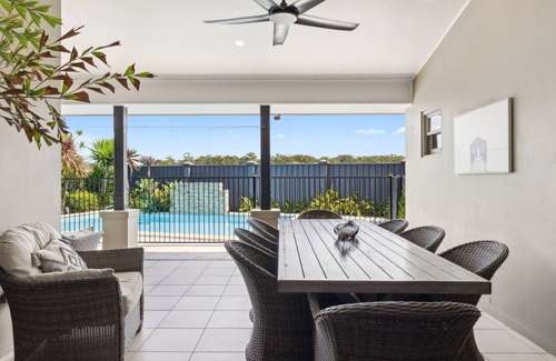 Outdoor Oasis dive into the inground pool or relax in the inviting outdoor living spaces, ideal for unwinding while enjoying the coastal breeze. A seamless connection between indoor and outdoor spaces ensures effortless holidaying.