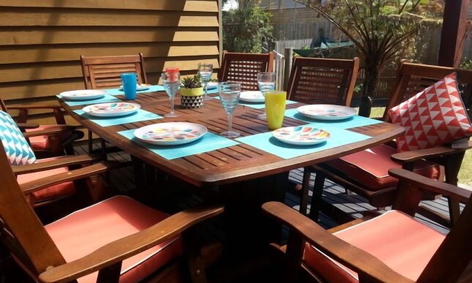 The Sea Shells Beach House is located walking distance from the beach, Dawn Cafe and the Ocean Grove Hotel Bistro. The beach is 400 meters away at the end of the street. Dawn Cafe has outside tables with water bowls for your furry friend and excellent coffee. A lot of customers comment on how great the cafe is. The Ocean Grove Hotel is also walking distance and includes a family bistro with large outside area which is great for summer.