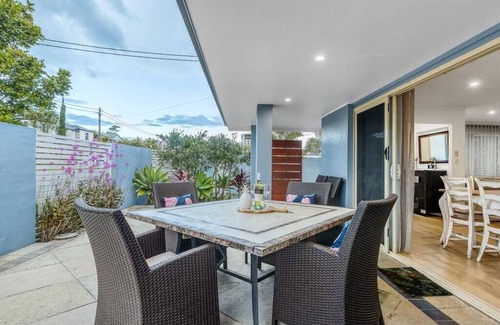 Comfortably sleeping six, this large home with secure gates is very family friendly with a backyard and patio, complete with outdoor setting and BBQ, perfect for afternoon drinks or social dinner.