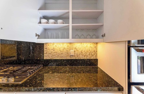 • Remodeled Kitchen Equipped with Granite Counter Tops and a Spacious Center Island