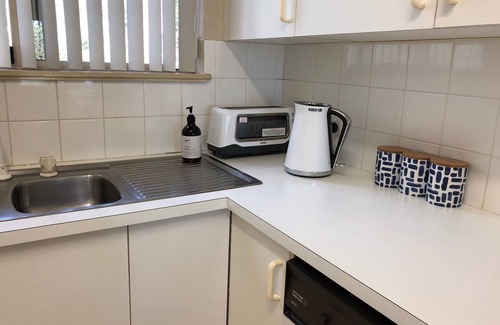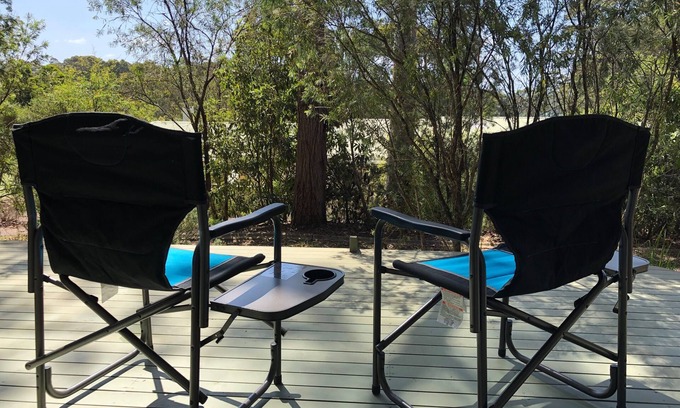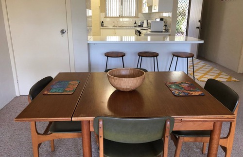 The townhouse has two bedrooms (one with a queen-sized bed and one with two single beds), a brand-new Bosch washer and dryer, two 3-seater lounges and two lounge chairs, large TV, a well-equipped kitchen with large refrigerator, stove/oven and microwave, and a large deck to soak up the sun. Close to shops but feels like you are in the bush!