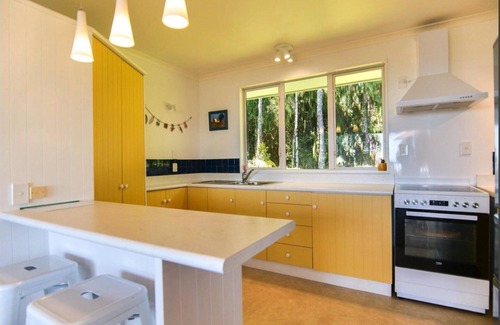 Unfortunately some areas may be unsuitable for children under 12 due to the high balcony and unfenced bush property, and unguarded log burner.