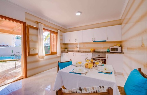 Nestled along the beautiful east coast of Mallorca, this charming holiday home offers a private pool and is just a short walk from the sea and the beach, providing the perfect getaway for relaxation and coastal exploration. The exterior of the property is meticulously designed, featuring a spacious garden with a private pool surrounded by comfortable sunbeds, allowing you to soak up the Mallorcan sun in peace. Enjoy alfresco dining at the large outdoor table, and for those who enjoy grilling, there is a traditional stone barbecue, ideal for preparing delicious meals. Inside, the house is bright and airy, with a welcoming living and dining area that includes a table for six, where you can gather for meals or relax on the sofa while enjoying your favorite shows on satellite TV. The spacious kitchen is fully equipped with everything needed for creating memorable culinary moments. The house has three comfortable bedrooms, each with two single beds, ensuring a restful stay for all guests. Two bathrooms, each with a bathtub, provide additional convenience and comfort. The house is perfectly located in the peaceful village of Sa Coma, just minutes from the beach, offering a tranquil environment while still being close to the lively area of Cala Millor, where you’ll find a variety of leisure activities and entertainment options.
