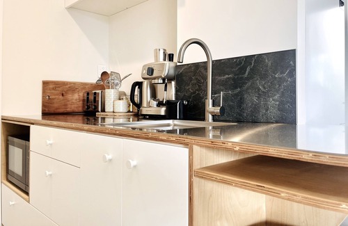 - Well-equiped kitchenette with another fridge/freezer, induction hob & combi microwave.