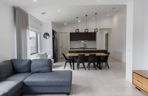 Welcome to "Coasty"—Your Ultimate Retreat! Featuring, 4 bedrooms, 2 bathrooms Home cinema room Pet friendly HEATED POOL!! TO 30 DEGREES Off-street parking for additional vehicles or boat Just a quick 15-minute drive from the sun-soaked beaches of Torquay and Barwon Heads Nestled close to premier golf courses and top wedding venues Sleeping 8 The space Welcome to "Coasty"—Your Ultimate Retreat! Dive into luxury and comfort at "Coasty," a stunning, brand-new coastal escape perfectly situated in Armstrong Creek. Just a quick 15-minute drive from the sun-soaked beaches of Torquay and Barwon Heads, and nestled close to premier golf courses and top wedding venues like Mount Duneed Winery, "Coasty" is the ideal destination for your next getaway. This modern 4-bedroom home offers spacious living, designed to comfortably sleep up to 8 guests. The bedrooms are arranged as follows: -Bedroom 1: King Bed with a private ensuite and walk-in robe - Bedroom 2: Queen Bed - Bedroom 3: Queen Bed - Bedroom 4: Queen Bed -Additional master bathroom with both shower and bath tub Step into the heart of the home—a stunning open-plan living, kitchen, and dining area that's perfect for entertaining or relaxing. The kitchen is fully equipped with everything you need to cook as if you were at home, from high-quality appliances to ample bench space. Luxury styling and high-end fittings are featured throughout, making every moment spent here feel like a five-star experience. For those looking to unwind, "Coasty" offers a dedicated home theatre room, complete with a projector screen. It's the perfect space for a cozy movie night with family and friends or an additional living area to spread out and enjoy. Convenience is key at "Coasty," with an oversized laundry that includes both a washer and dryer, perfect for extended stays. Whether you're here for a weekend or a longer retreat, you'll have everything you need to feel right at home. Stay cozy with ducted heating throughout, and keep cool in the summer with air conditioning in the main bedroom and living areas. The open-plan living spaces flow seamlessly into a secure backyard, complete with lush grass for pets (outdoors only) and plenty of room for relaxation. But the true gem of "Coasty" is the heated swimming pool, offering year-round enjoyment. Whether you're taking a winter dip or cooling off in the summer, the pool can be heated to your preference (up to 30 degrees). Just let us know 48 hours in advance if you'd like to adjust the temperature, and we'll take care of the rest—additional charges may apply tailored to your length of stay All bed linen and bathroom towels are provided for your convenience. Please bring your own pool towels, or we can provide them for a small additional fee. Wi-Fi and smart TVs are available throughout the home to meet all your streaming needs. With ample parking for up to 4 cars off-street, offering gated side access for boats or extra vehicles, "Coasty" is as practical as it is beautiful. Whether you're here for a beachside wedding, a family adventure, or simply to unwind by the pool, this home has everything you need for an unforgettable stay. Located in a quiet family neighborhood, "Coasty" offers the perfect balance of relaxation and convenience. And for those with a taste for adventure, an exciting water park is just a short drive away, making this the perfect home base for a fun-filled summer escape. Please note: We do not accept hens, bucks, schoolies, or parties of any kind. The maximum number of guests at this property must not exceed 8 people, and we do not permit visitors. Quiet hours are from 10 pm until 8 am. Book your stay at "Coasty" today and experience coastal living at its finest!**
