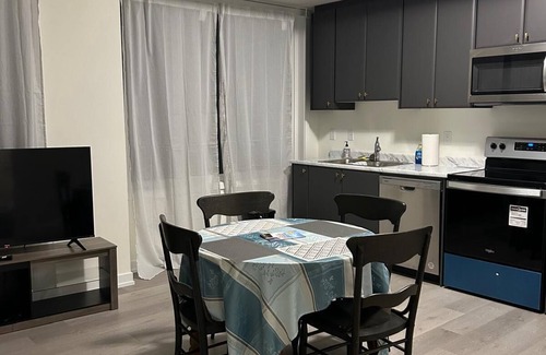 With cozy 2 bedrooms, spacious beds, fully equipped kitchen, and a welcoming living space, this retreat has everything you need for a comfortable and memorable stay. Conveniently located 5 mins from the main downtown area, just off the major highway, (401), the Coburg sandy beaches and great pubs and restaurants.