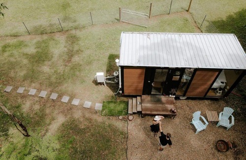 A lovely space set on 17 acres of land where you can unwind and relax. This cozy 139-square-foot tiny home has easy access to fresh tank water, split air conditioning, a kitchenette, cooking equipment, and excellent bathroom facilities. These amenities include an eco-friendly compost toilet, hand basin, and shower (gas heated for hot showers).