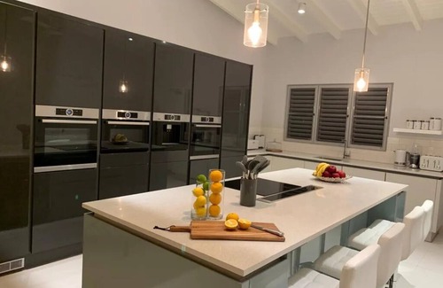 The villa is stylishly furnished to a high standard and is equipped with an impressive array of modern amenities including high-end fitted kitchen with touch panel Bosch appliances, Wi-Fi enabled coffee machine, wine fridge, ice maker, large kitchen island with seating and separate laundry room. All bathrooms are wet rooms with walk-in rain showers and twin wash bowls.