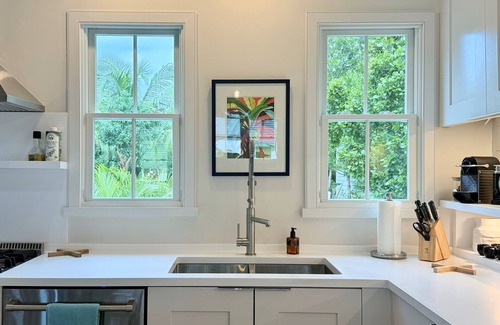 All the bedrooms feature king-sized beds and en suite bathrooms with double vanities. The kitchen is modern and fully equipped. There is a cozy indoor living room with a large smart TV, a lovely covered terrace with some of the best sunset views Harbour Island has to offer, and a bar area to test your mixology skills.