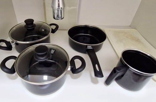 - Kitchen with duplex refrigerator, microwave, induction cooktop with 2 burners, water filter, electric coffee maker, pans, cutlery, glasses, cups, basic items and kitchen accessories