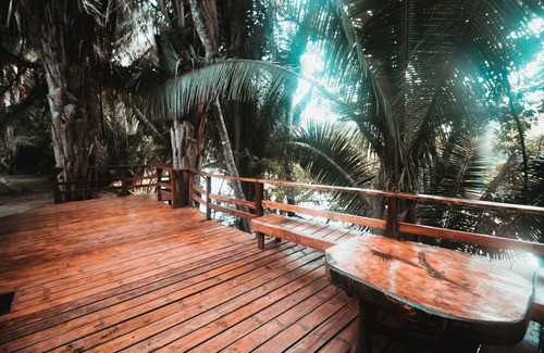Set apart from the village on a peninsula of the Mopan River, Cohune Palms is blessed with cool river breezes and a jungle setting. Being on the river and under gigantic palm trees certainly makes it feel far away from town - but the best part is that it is conveniently located just 2.5 miles outside of San Ignacio and is easily reached by taxi.