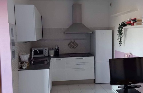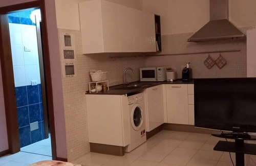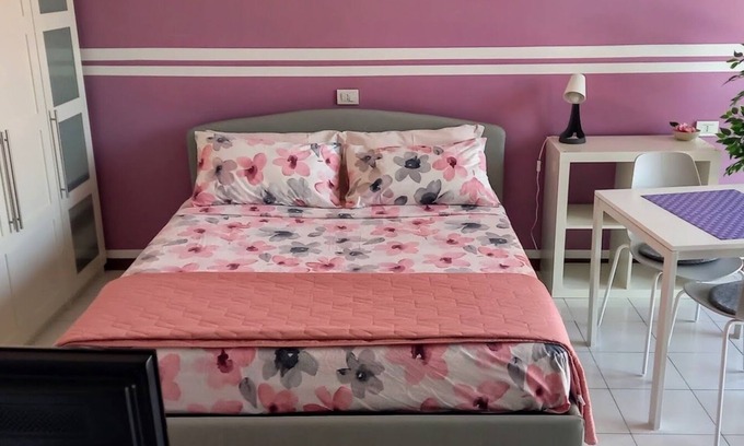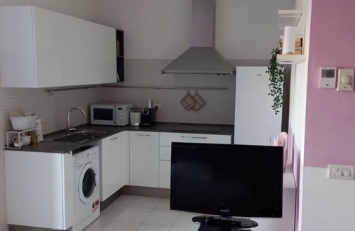 Rosaviola. In the elegant and quiet context of "Le case del Martesana" a few minutes walk from 2 metro stops MM2 Cologno Sud and Vimodrone in Milan, there is an apartment with an independent entrance, spacious, bright, high floor, furnished/co-furnished, air conditioned, Flat screen TV, which includes 1 entrance, 1 bedroom with double bed, 1 kitchenette, 1 dressing room and 1 bathroom with window and shower and bidet.