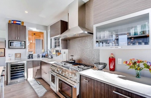 There are three king bedrooms, each with an en suite bathroom and walk in closet. The master has a large free standing soaking tub and a double rain shower. An additional bunk room has a custom made bunk bed and queen sleeper sofa, wonderful space for kids or one family. The main floor bathroom has a steam shower for everyone in the house to enjoy. Chef's kitchen features a Thermador® commercial 48 dual fuel range / double oven and is very well appointed (food processor, Vitamix, juicer, Cuisinart coffee maker, coffee grinder, etc.). There are three outdoor living areas, including a covered patio on the main floor with an American Eagle grill. A private deck with a fire table is located off the primary bedroom and there is a hot tub and flagstone patio on the lower level of the home.