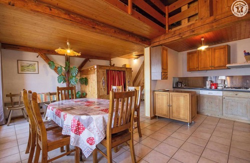1 cottage, 1 housing, 1 bed and breakfast in the House of the owner. r-d-c gite: living room kitchen, l-common laundry, 2 bedrooms (1 bed 2 pers. / 2 beds 1 pers.), mezzanine (2 single beds) pers, shower, balcony-terrace. Linens provided. Granier (RM 2) 1 km, Montchavin 19 km ski resort. Total area of the Gîte (104 m²), parties attic included. Beautiful farmhouse from the 19th century renovated. In the heart of a charming typical Haute Tarentaise village with narrow streets and houses resserees. Very quiet. Sunny South hillside. Good comfort. Very spacious. Light. Warm attic loft. Balcony. Magnificent panoramic views.