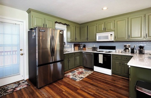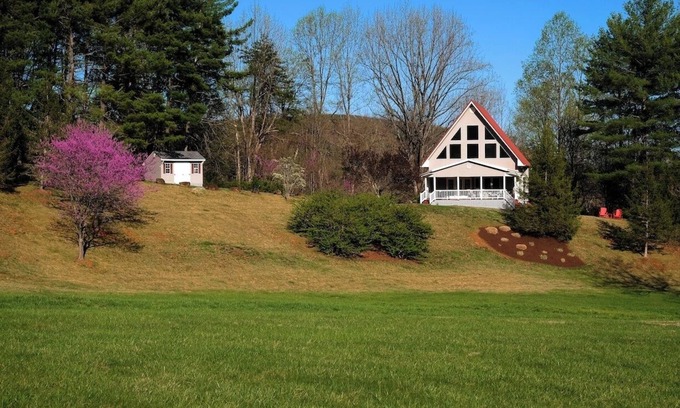 Windy Knoll invites you to come and relax and enjoy the stunning views of the Afton Mountain greenery. Large A-Frame windows allow the sunlight to come through so you can enjoy the birds and nature all around. The property sits on 3.5 acres so it is very private. An expansive rolling lawn in the front to enjoy watching the deer in the morning while having a cup of coffee on the wide front porch. Forest areas on the side and back of the house. Enter the home in the front door and a warm and welcoming living room await you with two couches and a gas burning fireplace. Throw blankets and pillows for snuggling while watching a movie. TV and DVD player with a selection of movies to choose from. The dining room with bay seated window has a large table to seat 6 comfortably. The front porch also has a dining table. Spacious, well appointed kitchen with all you need for preparing delicious meals after a day of hiking the Appalachian trail or sightseeing. Dish-ware, flatware, sauce and saute pans. Wine glasses, coffee mugs, serving ware. Crock pot, blender, mixer. Coffee pot with coffee bean grinder (Starbucks coffee beans in the pantry). You will find a few condiments in the refrigerator, spices, herbs, oil in the pantry. The loft bedroom has a Queen bed and a Double Bed with a private bathroom and shower. The first floor bedroom has two twin beds and a separate bathroom with walk in shower. Loft area also has a desk with laptop and printer for your use. Back deck has a grill all ready for those barbecues!