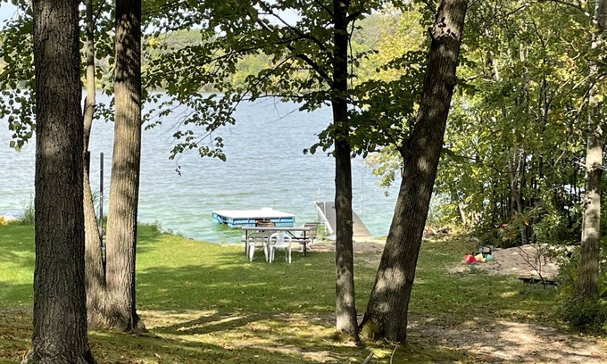 Spacious and bright, newly remodeled two bedroom with large bathroom. Beautiful view of lake. Picnic table, charcoal grill provided; firepit and zero entry beach out your front door. Enjoy shared use of kayaks, paddleboats and canoe.