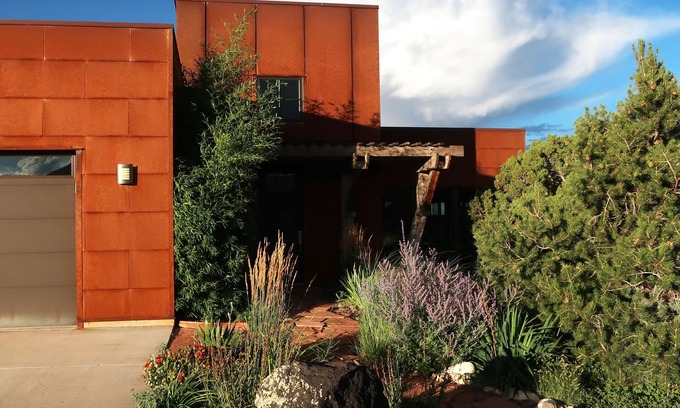 Modern 2 bedroom house, one king-size bed, one queen, with large open space kitchen/living room area, 2 bathrooms. All rooms with large windows, sliding doors, views, easy access to outdoors. Well-equipped kitchen. Outdoor grill on porch. Fire pit. Labyrinth. Roof deck for stargazing, though it's possible to stargaze from bed! Sound system throughout house. Wi-fi. Air conditioned. Roku TV. Everything you need for easy living in one of the most beautiful places in America. If you haven't been to this area, you owe it to yourself to come. Cathedral Valley. Hickman Bridge. Burr Trail. Great hikes and exploring by car. Good guides available for fishing, riding, jeep touring. An hour's drive from Boulder, with Hell's Backbone Grill and Burr Trail Grill. If you're doing all the Utah national parks, this is a great place to stay between Arches/Canyonlands and Zion/Bryce. Bryce is 2 hours away. Good food in nearby Torrey, including Torrey BBQ and Wild Rabbit Café. This is the vacation home of two artists based in Florida who hope you find the same calm and relaxation in this place that they do. Beautifully managed for us by April Morrison.