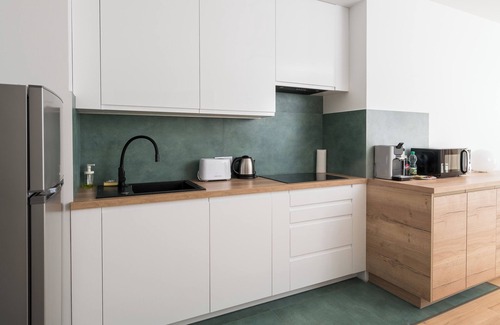 Comfort City Modern Studio features a modern living room with a sofa bed and kitchenette, a bathroom, and a spacious balcony where guests can relax and enjoy their morning coffee or an evening glass of wine. The apartment offers top-class amenities, including free WiFi, cable TV, an iron, a washing machine, a hairdryer, a dishwasher, an induction stove, a fridge with a freezer, a microwave, a toaster, a coffee maker, and kitchen utensils. Additionally, the apartment is equipped with air conditioning, providing extra comfort, especially on hot days. Guests also have access to a parking space in the underground garage.