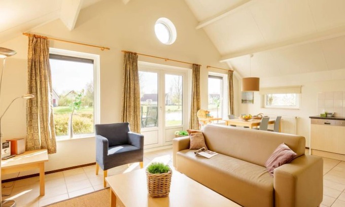 Child friendly resort "Park Sandur". Outside the resort, 10 km from the centre of Emmen, on the lake, in the countryside. For shared use: indoor pool heated. Shower/WC in the pool area, children's pool, slide, hot tub, tennis (extra), basketball, badminton (extra), children's playground, petting farm. In the complex: reception, restaurant, bar, breakfast room, bistro, WiFi, sauna, fitness room (extra). Steam room (extra). Bowling (extra). Table tennis (extra). Billiard table, shopping facilities, bicycle rental. Available: children's bicycles, canoe, boat (extra). Central parking spaces. E-charging station. Supermarket 100 m. Golf course (9 hole) 2 km, minigolf 50 m. Nearby attractions: Van Goghs huis 6 km, Wildlands Adventure Zoo Emmen 9 km, Plopsa Indoor Coevorden 16 km, Hunnebedden centrum 30 km. Please note: car recommended. Entertainment. The owner does not accept any youth groups. (extra). The photograph shows a typical example. All houses/apartments are individually designed/furnished. Longstays (21 days or more) and workers are on request.