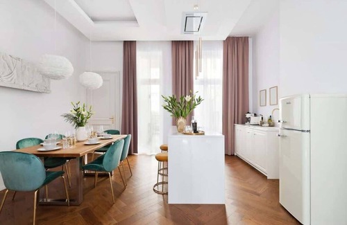The apartment has great system of air-conditioning. Apartment is stylish, elegant and spacious, ideal for family or group of friends. Located close to railway station and Main Square, allows to spend amazing time in Cracow.