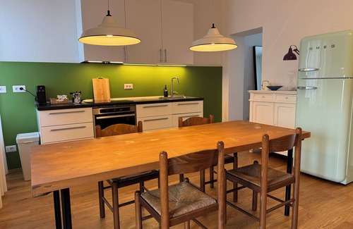 A living room, a dining area, air conditioning, and a desk are featured at this 1-bedroom, 2-bathroom rental. Connect to the free WiFi, or get cozy in front of the Smart TV. Bathroom amenities include a hair dryer, a bidet, and towels. The kitchen is equipped with an oven, a stovetop, and a refrigerator, as well as a coffee maker, an electric kettle, and a lobster pot. And thanks to the washer and dryer, you'll even be able to travel light. Other amenities include bed sheets, an ironing board, heating, and a computer monitor.